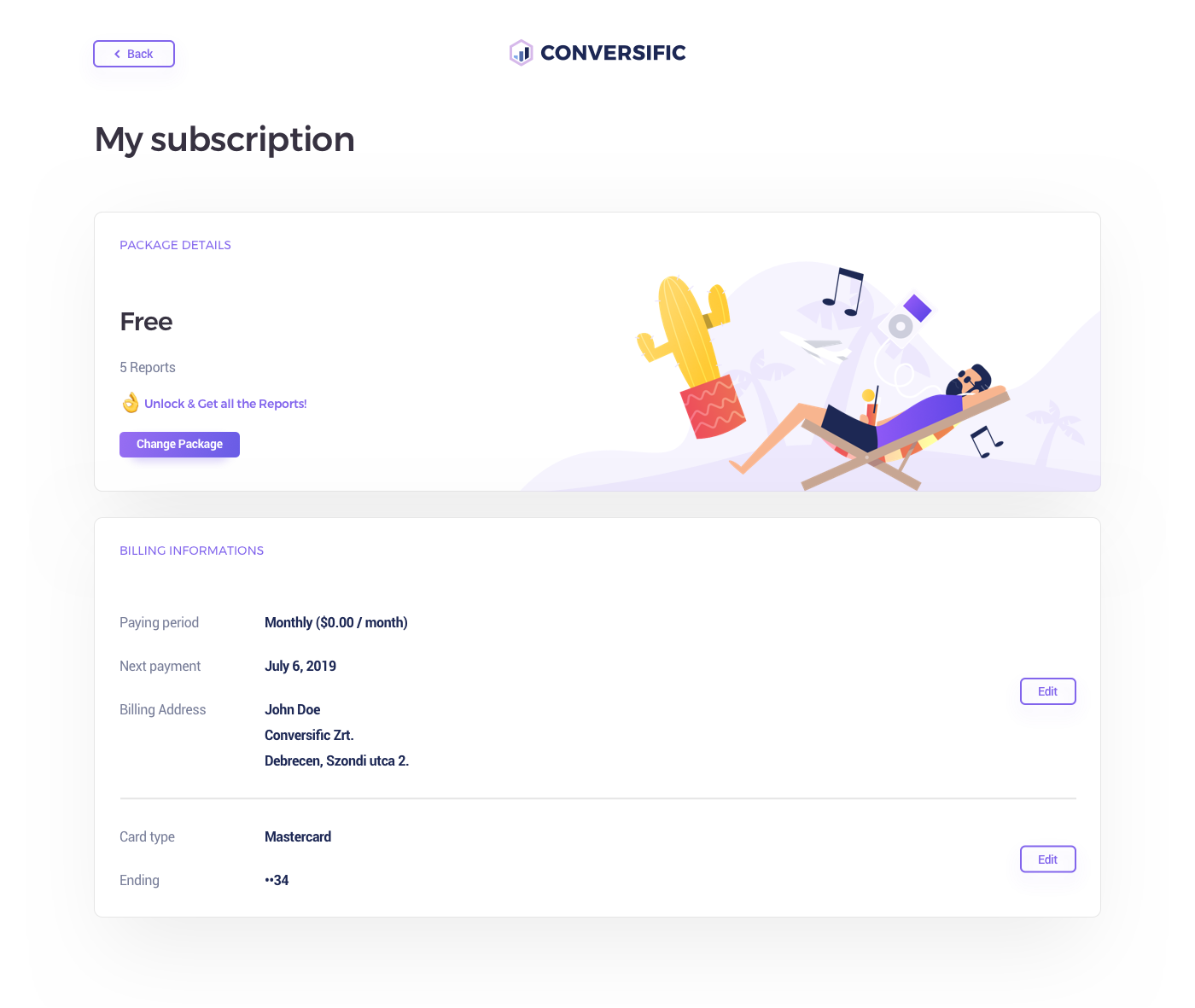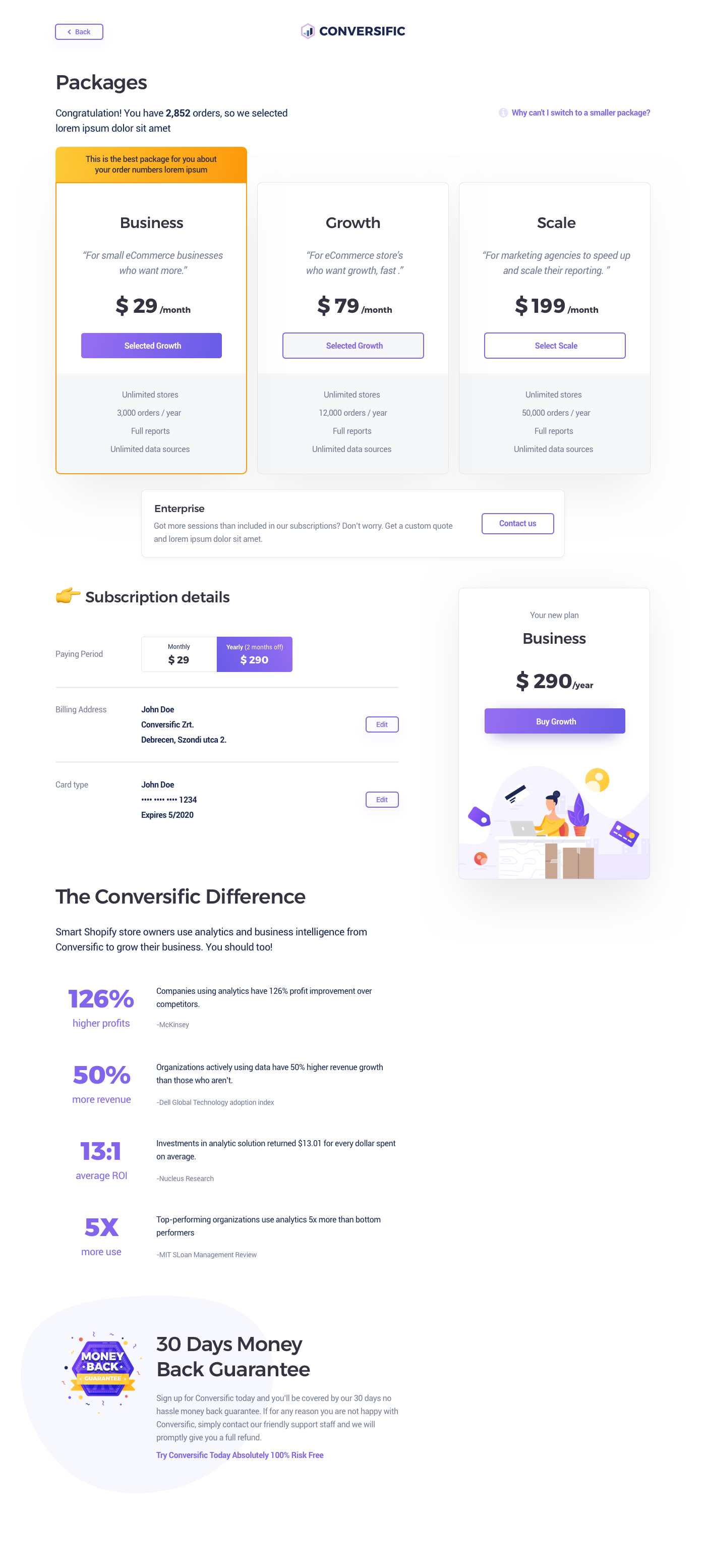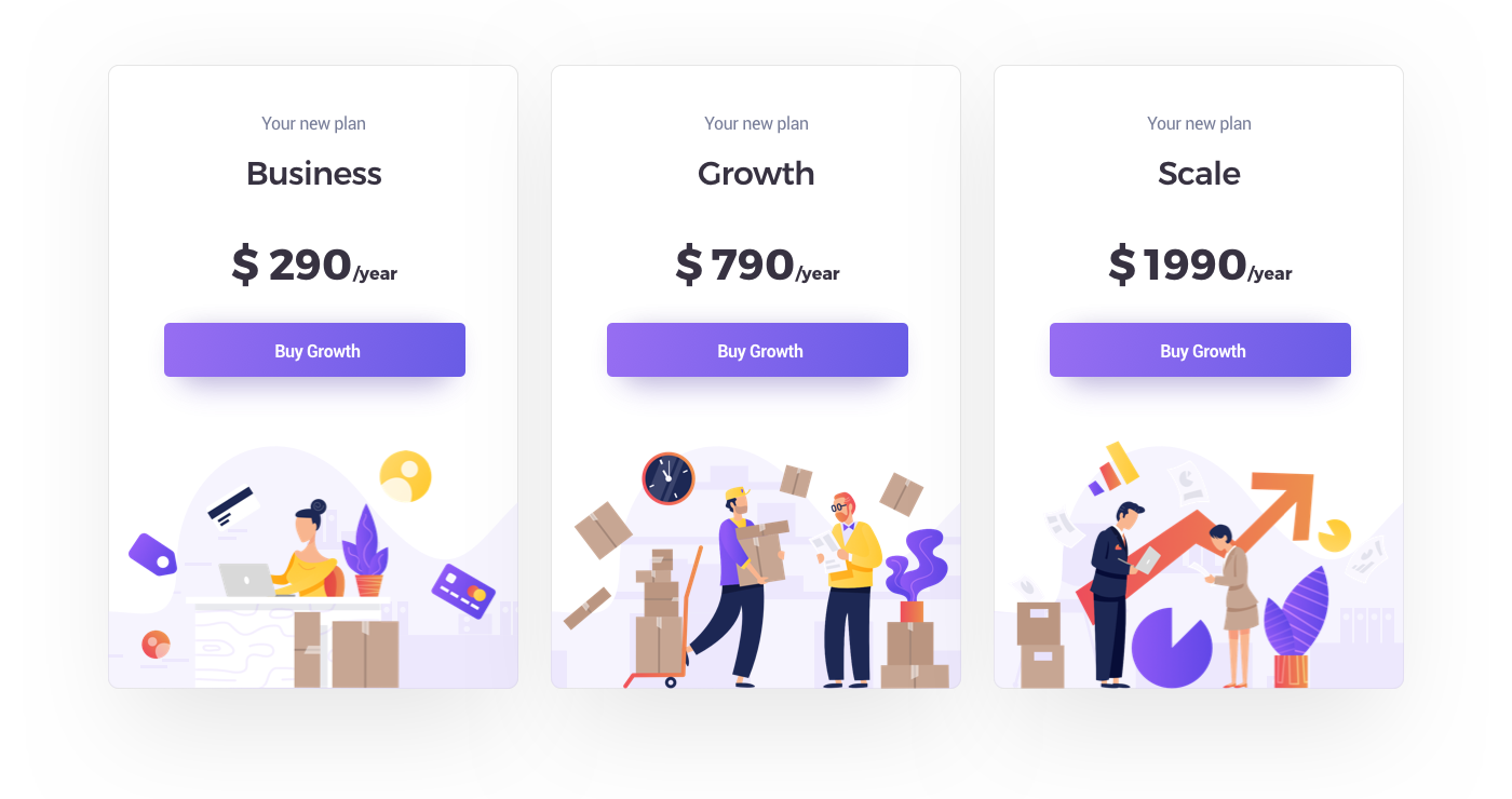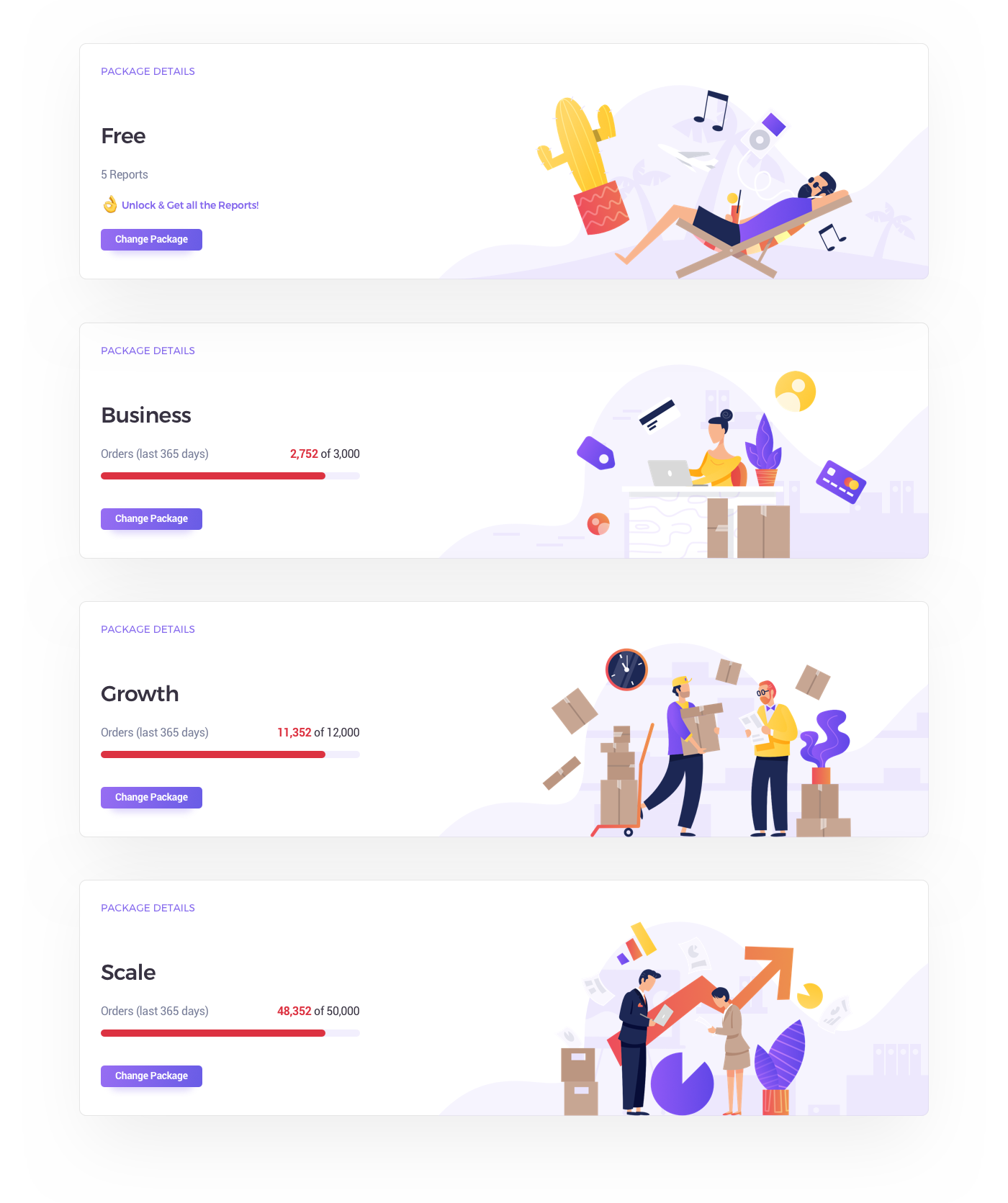 Flat illustrations & UI Design for Subscription and Packages Pages