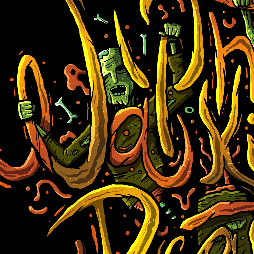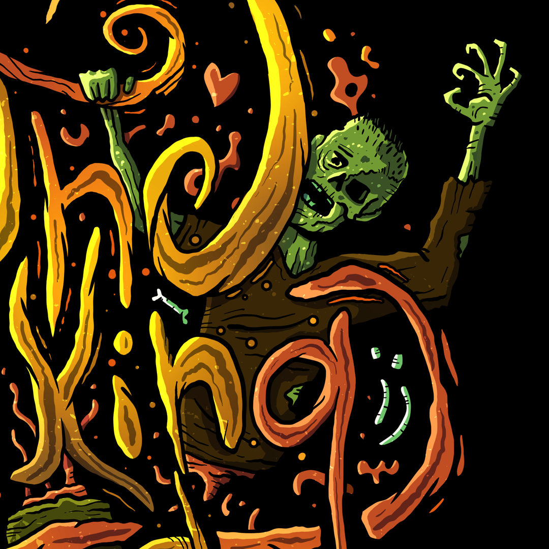 I like zombies & mix calligraphy with illustration.